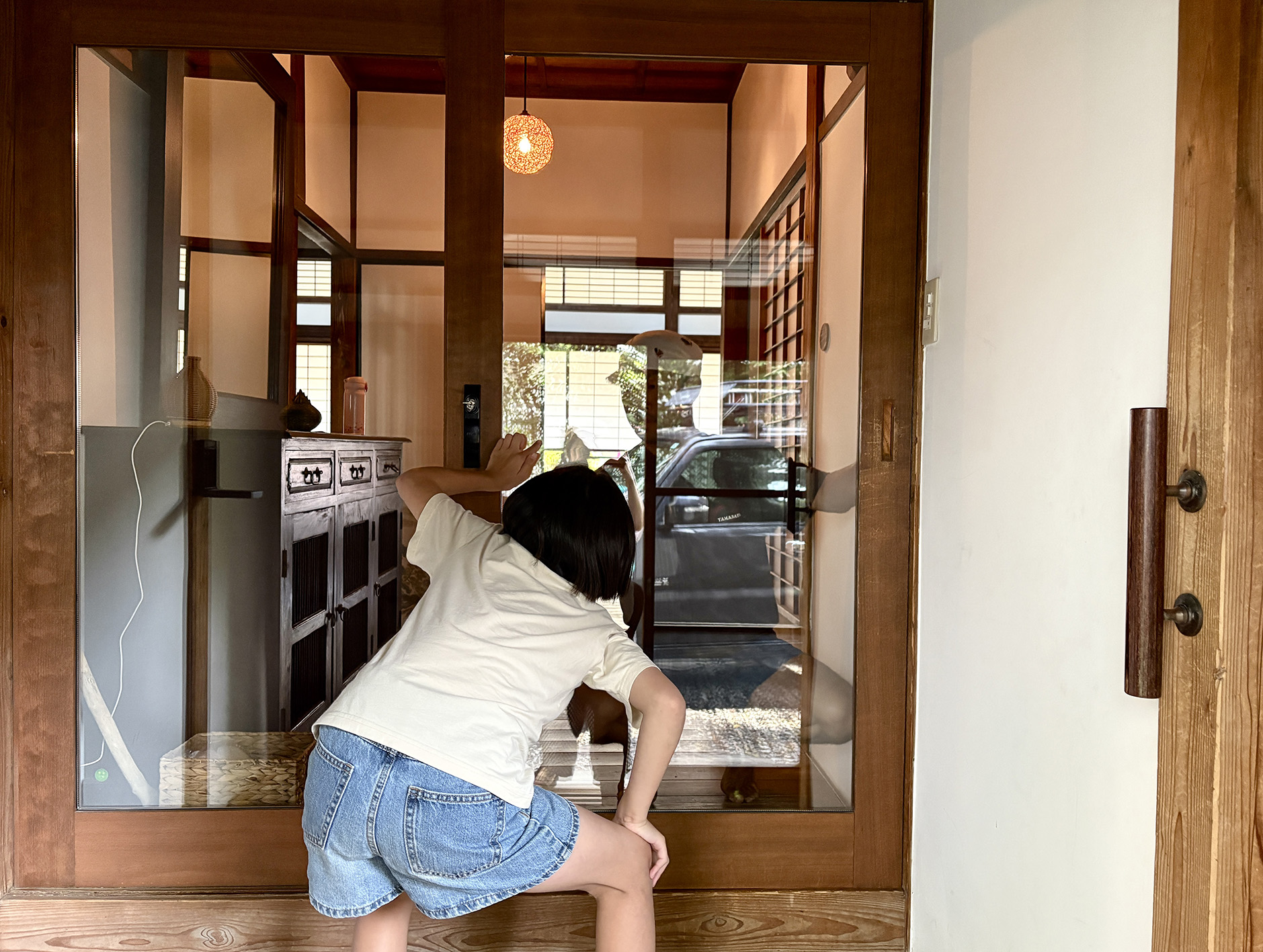 最後の最後、玄関のガラスの汚れを内から外から念入りにチェックして完了。